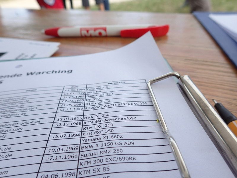 Wo Enduro Wochenende draufsteht, sollte dies auch drin sein. Dies bedeutet, dass ihr zumindest ein zulassungsfähiges Motorrad mitbringen solltet. Wir wollen kein verkapptes Moto Cross Rennen veranstalten, sondern eine charmante Trainingsmöglichkeit bieten, bei der auch unterschiedliche Fahrniveaus harmonieren. Daher sollte euer Fahrzeug – auch im eigenen Interesse – in einem fahrsicheren, technisch einwandfreien Zustand und insbesondere nicht zu laut sein. Bitte keine ausgeräumten Krawalltüten oder Cross-Auspuffanlagen! Quads und Gespanne können leider nicht teilnehmen.